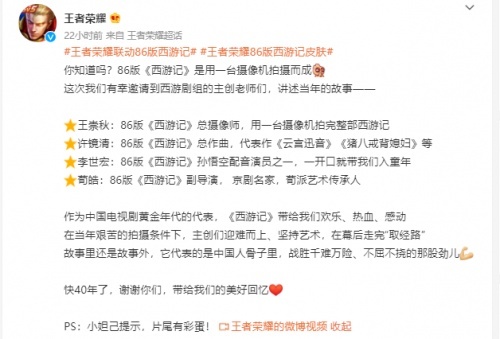 9月8日,王者荣耀官方发微博称,将联动86版西游记,推出86版西游记皮肤。大家最喜欢的英雄孙悟空,又将迎来新的皮肤了!