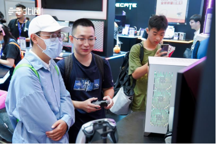 在北通体验区,一款新手柄几乎吸引了全场的目光,一人在玩,众人围观!