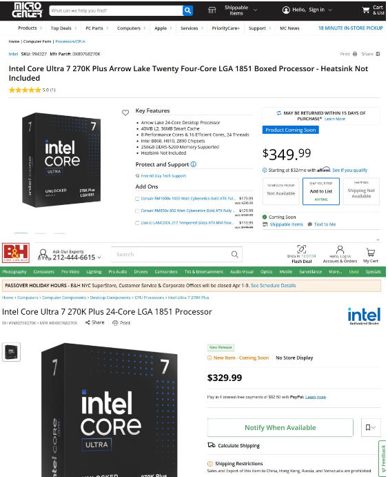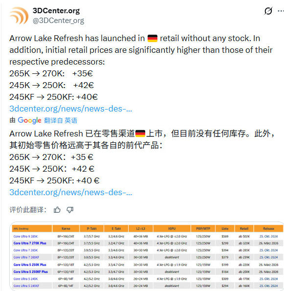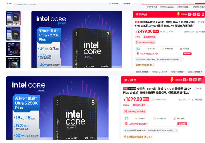 2026-03-30 英特尔Ultra 200S Plus处理器海外开售三天 价格已上涨17%
