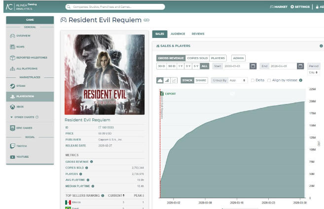 2026-04-02 《生化危机9》Steam销量最高 但PS5上最赚钱