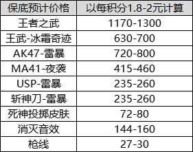 接着,按照上文的抽奖结果,简单给各位分析一波每个武器的保底价格。