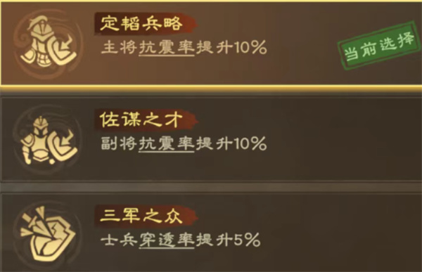 关键提醒:“偃武” 系列战法(如偃武・破军)是阵容核心,若没有顶配战法,可用 “轻勇飞燕”“暴敛四方” 等追击战法替代,但需确保至少 1 名武将携带 “偃武” 基础战法,否则无法触发阵营联动效果。