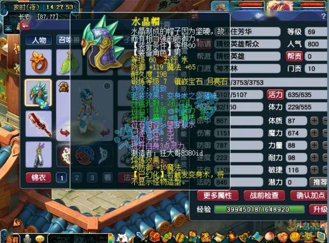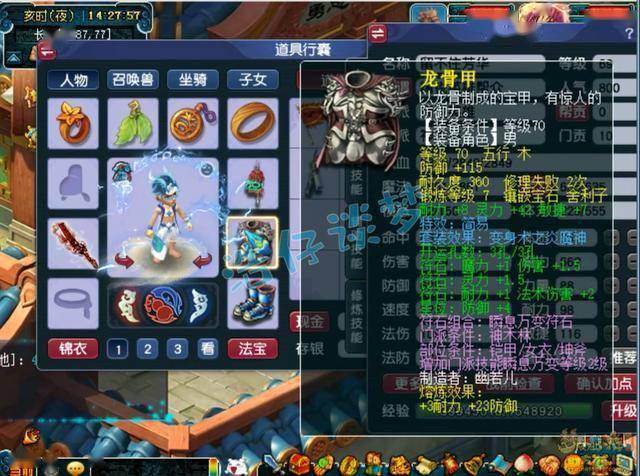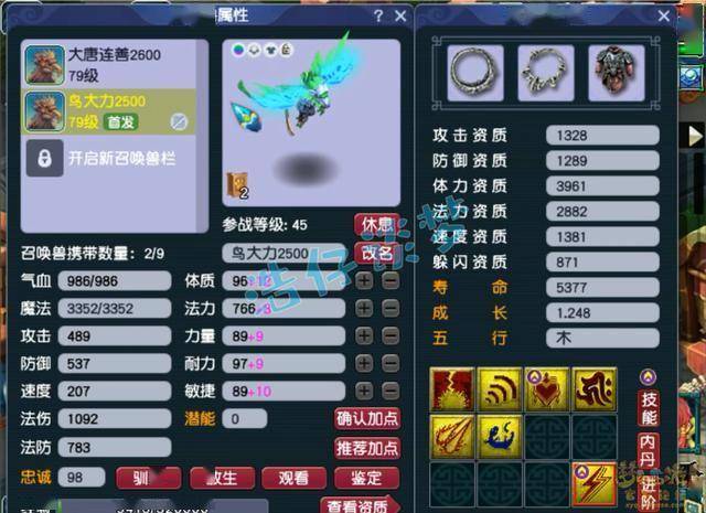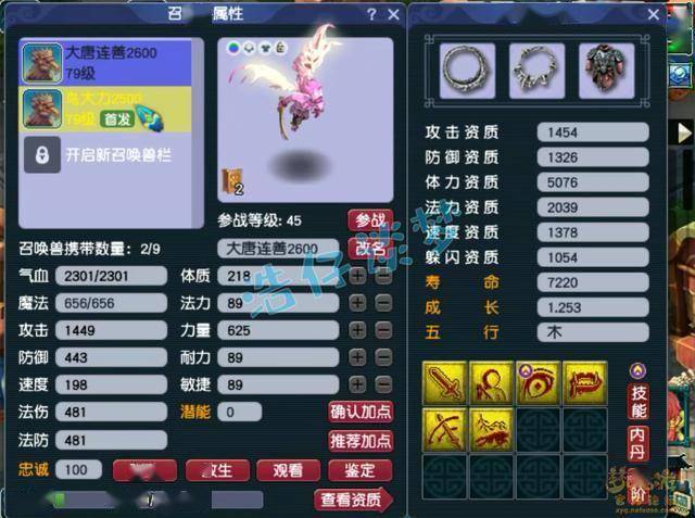 好了,这个69级神木林展示完毕,除了武器之外,它的装备和宝宝还是比较普通的。主要就是用来平时刷任务,不过就是这样一位普通玩家,鉴定出了超顶级的法器神器,一朝改变命运,太令人羡慕了