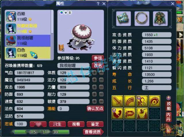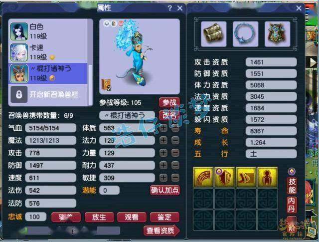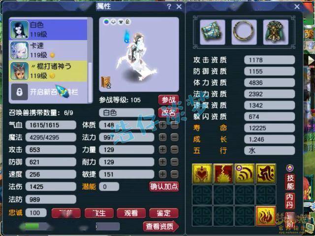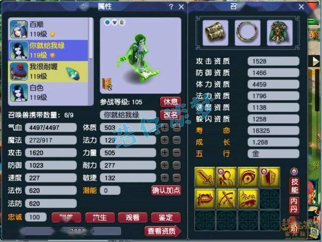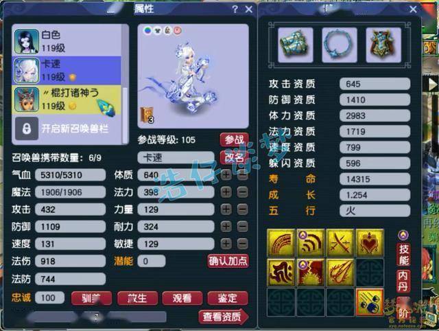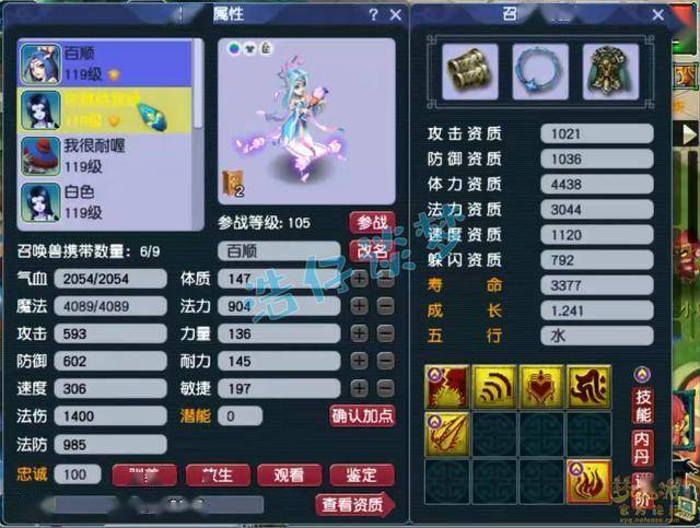 4技能配速血宠净瓶女娲,速度资质很不错,套装带的是高神。