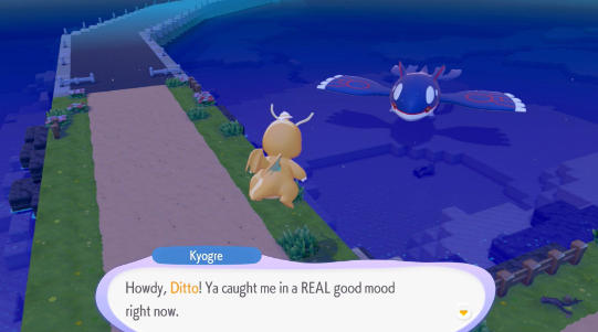 完成“打哈欠引发风暴!”重要委托后,你会在宝可梦图鉴中登记盖欧卡,并且盖欧卡可能偶尔在水中呼唤你,使各个区域下雨。当它们出现时,你可以与它们交谈,但不会发生太多其他事情。