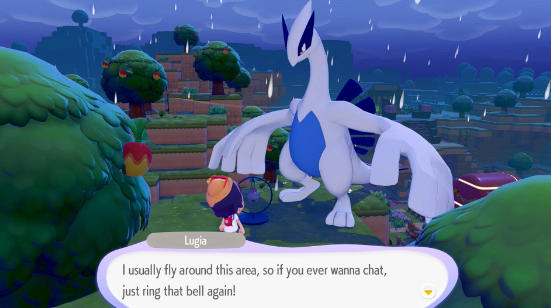 你可能会看到洛奇亚在头顶飞翔,掉落银色羽毛,但你可以与它成为朋友并在宝可梦图鉴中登记它,前提是你已经遇到了另外三只传说鸟宝可梦(急冻鸟、闪电鸟和火焰鸟)。在你将这三只登记到宝可梦图鉴后,你将学会制作海声铃铛的配方。