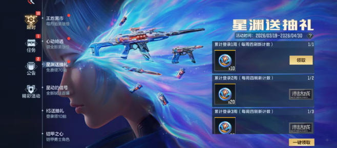 别急~看这里哦!在星渊送抽礼活动中,累计登录三周可领50枚星渊夺宝币,活动时间内一共完成15局排位赛,可领取剩下的20枚星渊夺宝币。仅需完成简单的任务,就可以在星渊送抽礼活动中拿下这70枚星渊夺宝币!