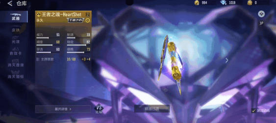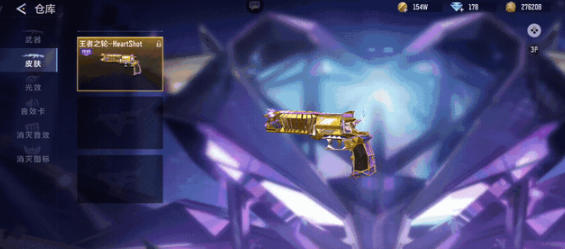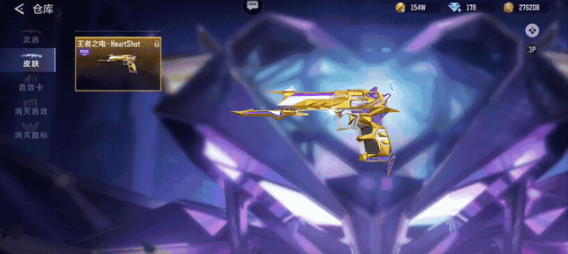 王者之轮-HeartShot枪身主体以金丝镶镀,弹巢、握把等关键部位镶嵌通透紫钻,流光溢彩,枪身尾部印有超大HS爱心logo,动态流光随射击动作流转,辨识度拉满。