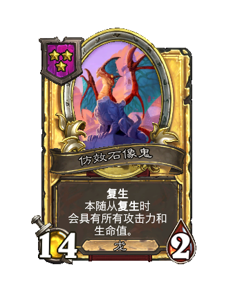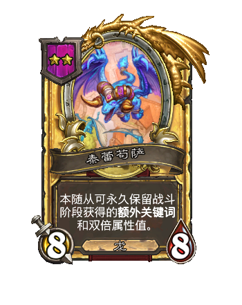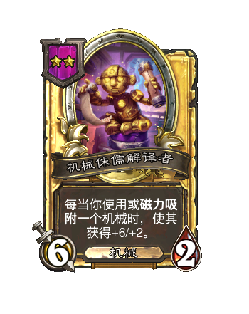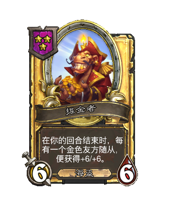 改动前:3/2。在你的回合结束时,你每有一个金色友方随从,便获得+3/+2。