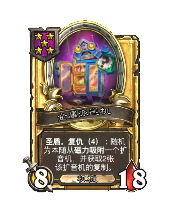 改动后:4/9。复仇(4):圣盾。随机为本随从磁力吸附一个扩音机,并获取一张该扩音机的复制。
