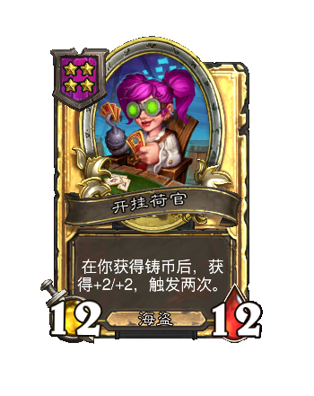 改动前:[等级3] 3/3。在你获得铸币后,获得+1/+2。