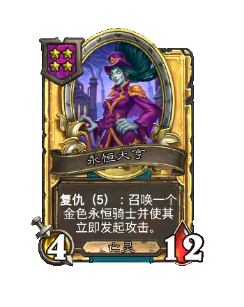 改动后:[等级4] 2/6。复仇(5):召唤一个永恒骑士并使其立即发起攻击。