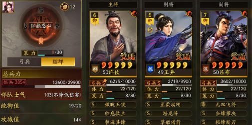 辅助武将的战法搭配同样关键,直接决定汉吕阵容的续航和稳定性。平民阵容中,华佗优先带“盛气凌敌+御敌屏障”,盛气凌敌能控制敌方,打断其输出节奏,御敌屏障则能为全队提供减伤,搭配华佗的治疗,大幅提升阵容生存;朱儁则带“无当飞军+士别三日”,无当飞军补充群体伤害,士别三日既能提供伤害,又能在危急时刻提供保命效果。中高端阵容中,曹操优先带“锋矢阵+刮骨疗毒”,锋矢阵能进一步强化吕布的输出,刮骨疗毒则能针对性治疗吕布,避免其残血暴毙;郭嘉则带“白马义从+暂避其锋”,白马义从能提升全队速度,让吕布和曹操优先出手,暂避其锋则能为吕布提供减伤,完美规避敌方第一波爆发伤害。这里提醒一句,辅助战法不要盲目追求高阶,蓝色、紫色战法搭配合理,效果不亚于金色战法,平民玩家无需强求,避免浪费珍贵的战法点。
