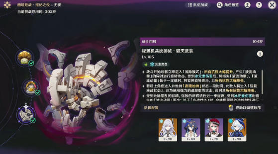 秘源机兵·统御械是冰系角色的专属BOSS,核心难点在于破解它的开局高抗性,适合练了冰系队伍的玩家,平民也能凭借双冰队轻松应对,这也是我搭配神里绫华后,最擅长打的一只BOSS。它的核心机制很明确:开局拥有270%的全抗性,普通攻击和技能打上去伤害极低,只有用高频冰元素伤害,持续削减它的冰条,冰条清空后,BOSS会解除强化状态,此时冰元素抗性降低30%,同时全抗性也会大幅下降,进入破盾输出窗口期,后续只要持续输出就能轻松击败。
