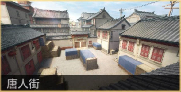 二层平台由青瓦白泥材料打造,点缀着鞭炮、大鼓等装饰。该区域结构并不复杂,可以通过木箱和跳板位置进入二层平台且入口单一、易守难攻。在此可以听声辨位,防范来自阁楼的突袭。此外,平台角落还是一个“老六点位”,可用于偷袭从A包点进攻的敌人。