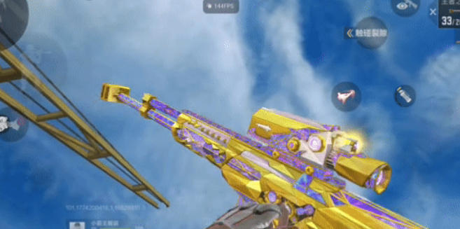 王者之神-HeartShot延续了HeartShot系列皮肤的整体配色,整个枪模在枪械构造细节方面有所改动优化,狙击镜、枪托和枪管等零件均采用不规则几何切面拼接而成,枪身整体以鎏金为基底,在不规则紫水晶的搭配下呈现出钻石切割般的尊贵之感。