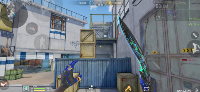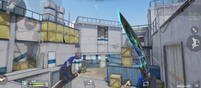 后续我们可以选择前顶,到达敌方集装箱后的小木箱,就可以攻击到敌方复活点的敌人;当然我们还可以跳到集装箱上,来打前往左侧上平台区域的敌人。