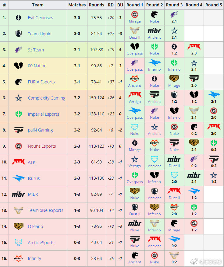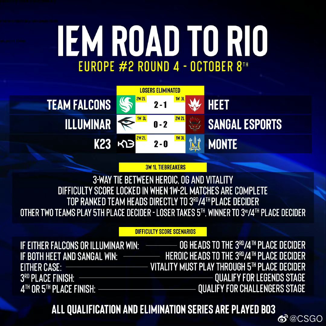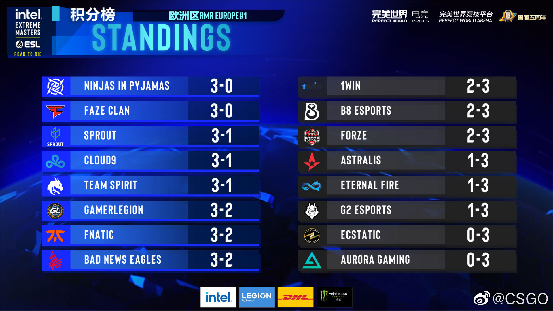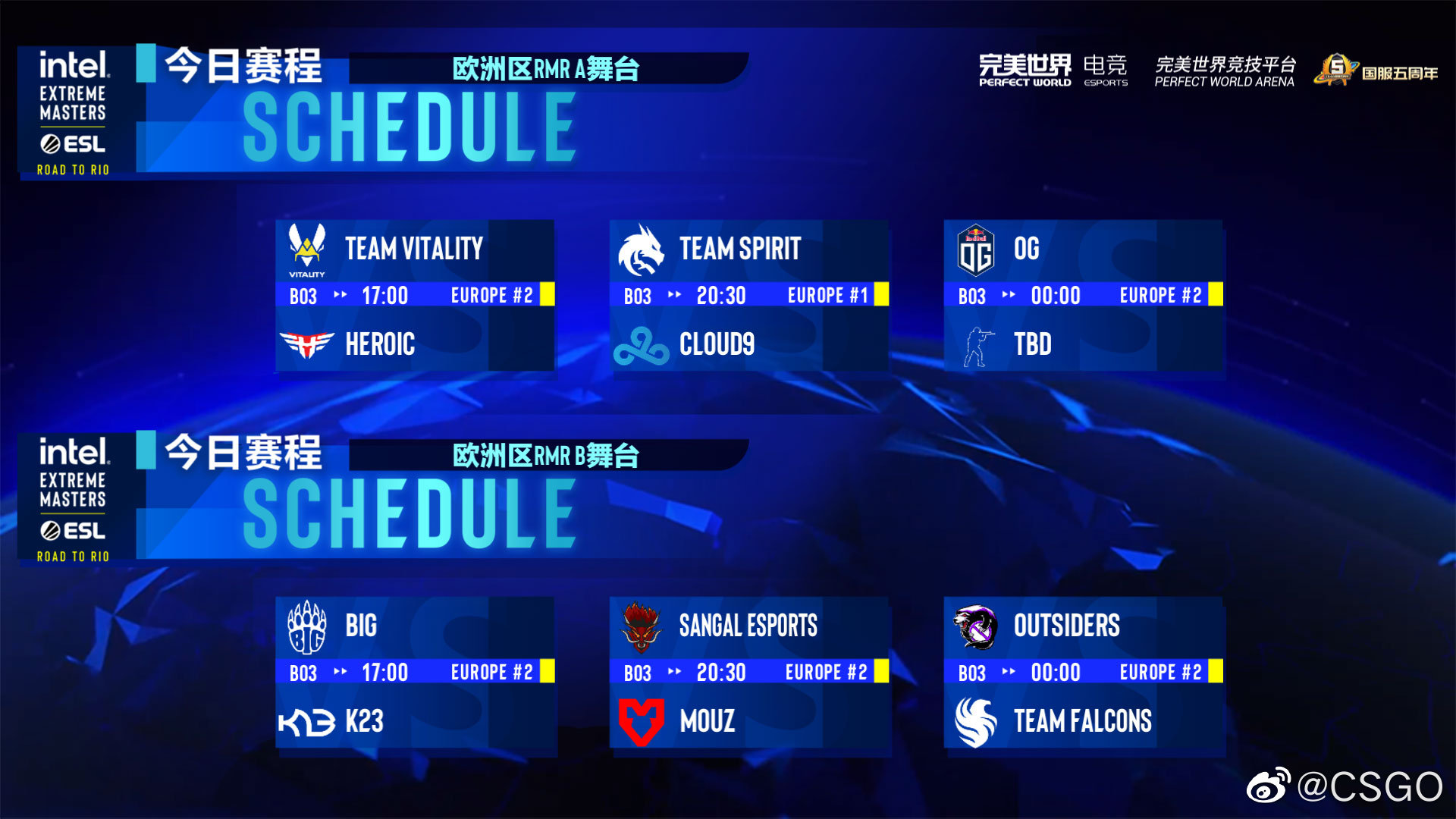 A组同为3-1的Spirit与Cloud9进行BO3加赛,胜者晋级Major传奇组。B组同为3-1的3支队,Vitality与Heroic进行BO3争夺,胜者与OG进行BO3加赛,再获胜的晋级Major传奇组。