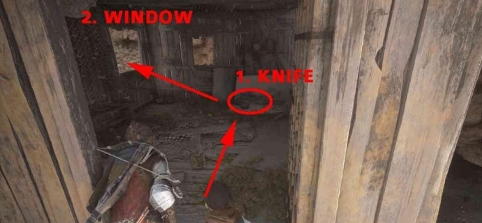 遭遇最后一个敌人后,在火把前右拐,俯身进入沉船就能找到箱子,用小刀将其撬开