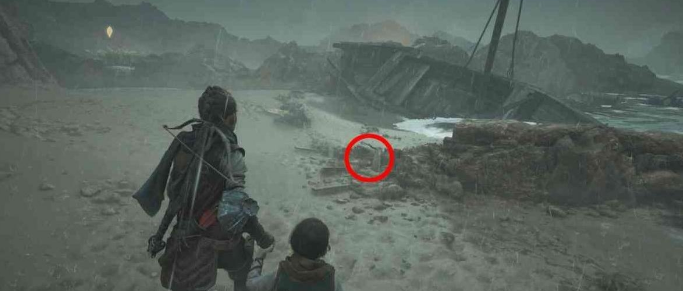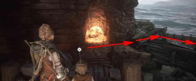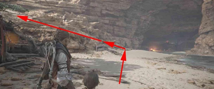 离开满是老鼠的洞穴后,来到另一处海滩,左拐爬到上边,走到尽头处互动