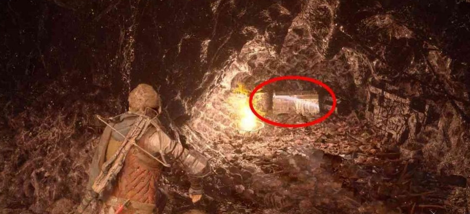 推着火盆进入洞穴,左手边有一个大箱子,先点燃旁边的火盆,赶走老鼠后再过去开箱拿工具