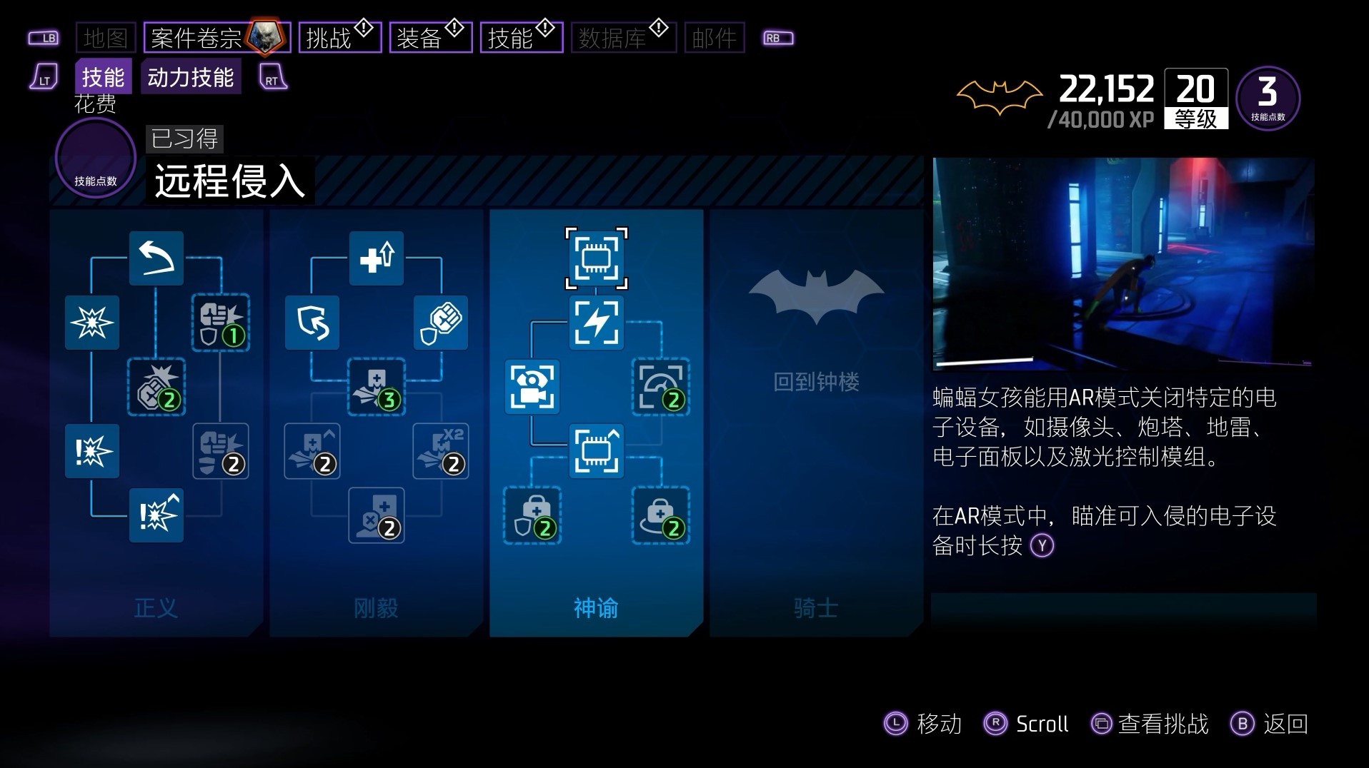 每位角色的动作和技能设计,都颇能体现他们作为超级英雄的特点。像是脑子灵光的蝙蝠女擅长黑入各类电子设备,而杂技团出身的夜翼则擅长在空中蹦来蹦去地攻击、红头罩则是使用枪支和炸弹的好手... ...但许多技能的实用性并不高,像夜翼就算把弹跳相关的技能全部点满,实际战斗中也很难会触发额外弹跳、多次攻击等效果。