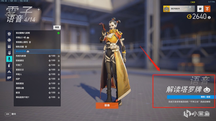 按照顺序,接下来是不祥之兆,该任务的奖励为雾子语音“解读塔罗牌”,不过这段语音是守望先锋归来第一段蓝色稀有品质的语音,使用时雾子会随机说出七段不同的语音。