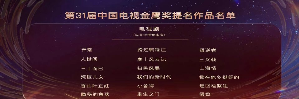 第31届金鹰奖提名作品名单公布,今年的提名名单中有四部优秀网剧《沉默的真相》《开端》《隐秘的角落》《重生之门》,提名的这些剧你们都看过吗?不知道最后哪一部会获奖呢?