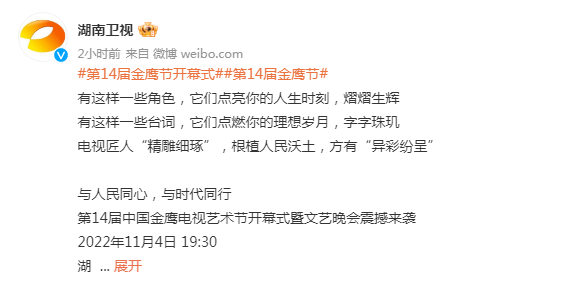 2022-11-02 第14届金鹰节发布会直播在哪看 第14届金鹰节发布会直播什么时候开始