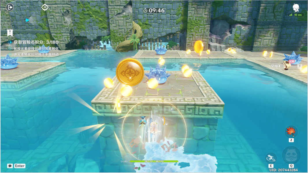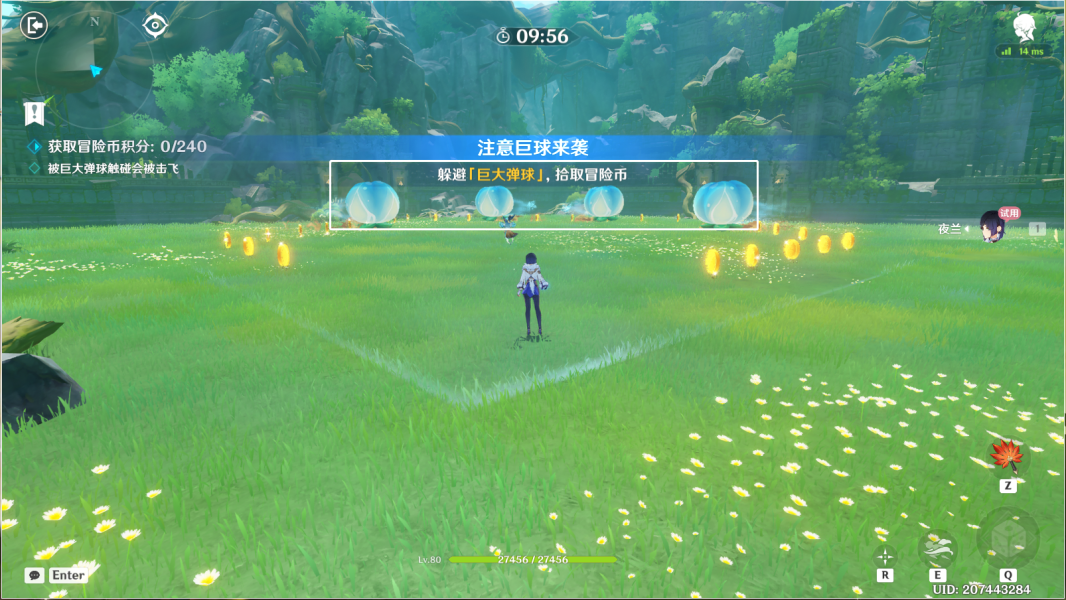 躲避「巨大弹球」,拾取冒险币获得积分;