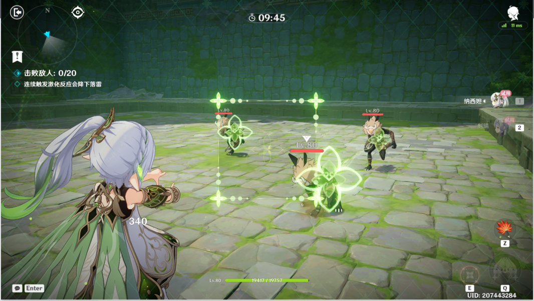 然后刻晴元素爆发多次攻击丘丘人触发超级落雷。
