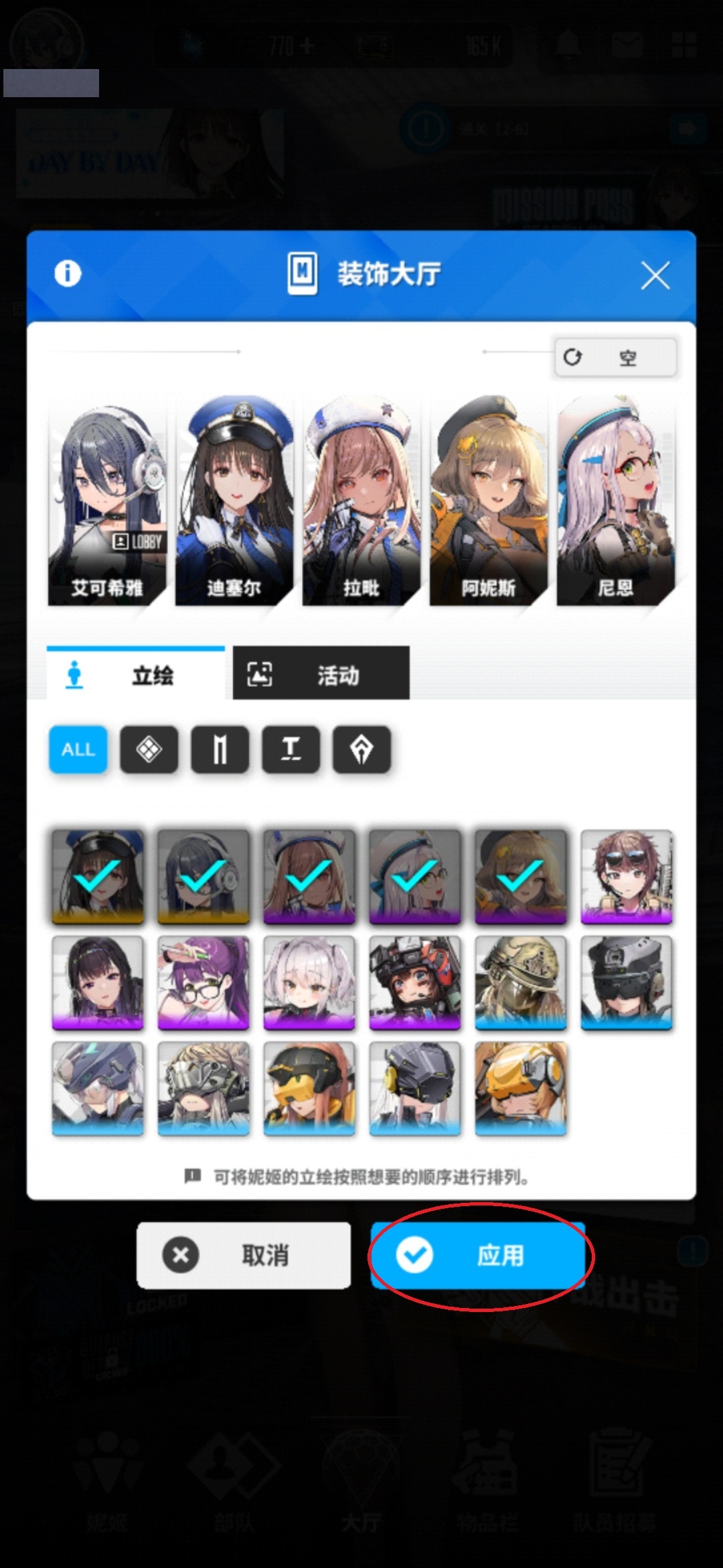 3、打开后就可以更换主界面的人物了,换完点击应用即可。