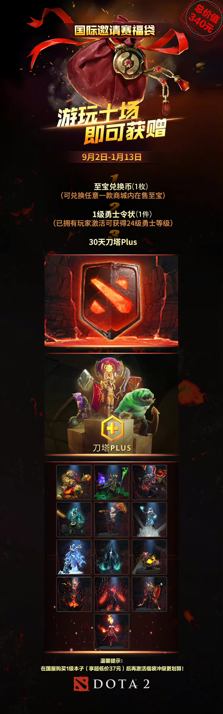 以上就是手游巴士为您提供《dota2福袋活动到几号 dota2福袋活动结束时间》的详细内容,更多精彩内容请继续阅读上一篇《原神百亿昼夜的百亿青春成就攻略-原神百亿昼夜的百亿青春成就怎么获得》2022-11-14 dota2福袋活动到几号 dota2福袋活动结束时间