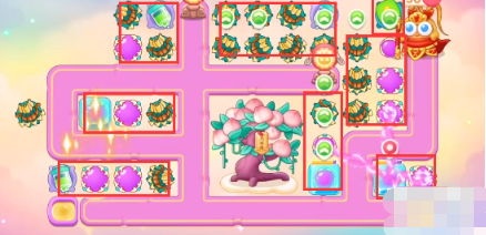 4、然后将右侧和桃树附近的道具打开,桃树附近可以放置魔法球输出;