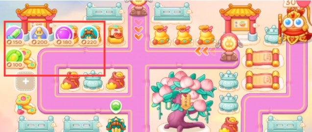 6、具体炮塔如下,可以放在第二排,因为第一排塔防会被冰冻兔冻住。