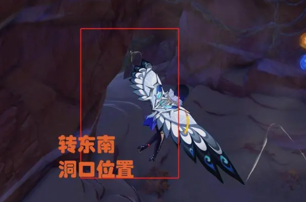 4、跳下悬崖之后往东南方向飞,在悬崖底部可以看到一个洞口