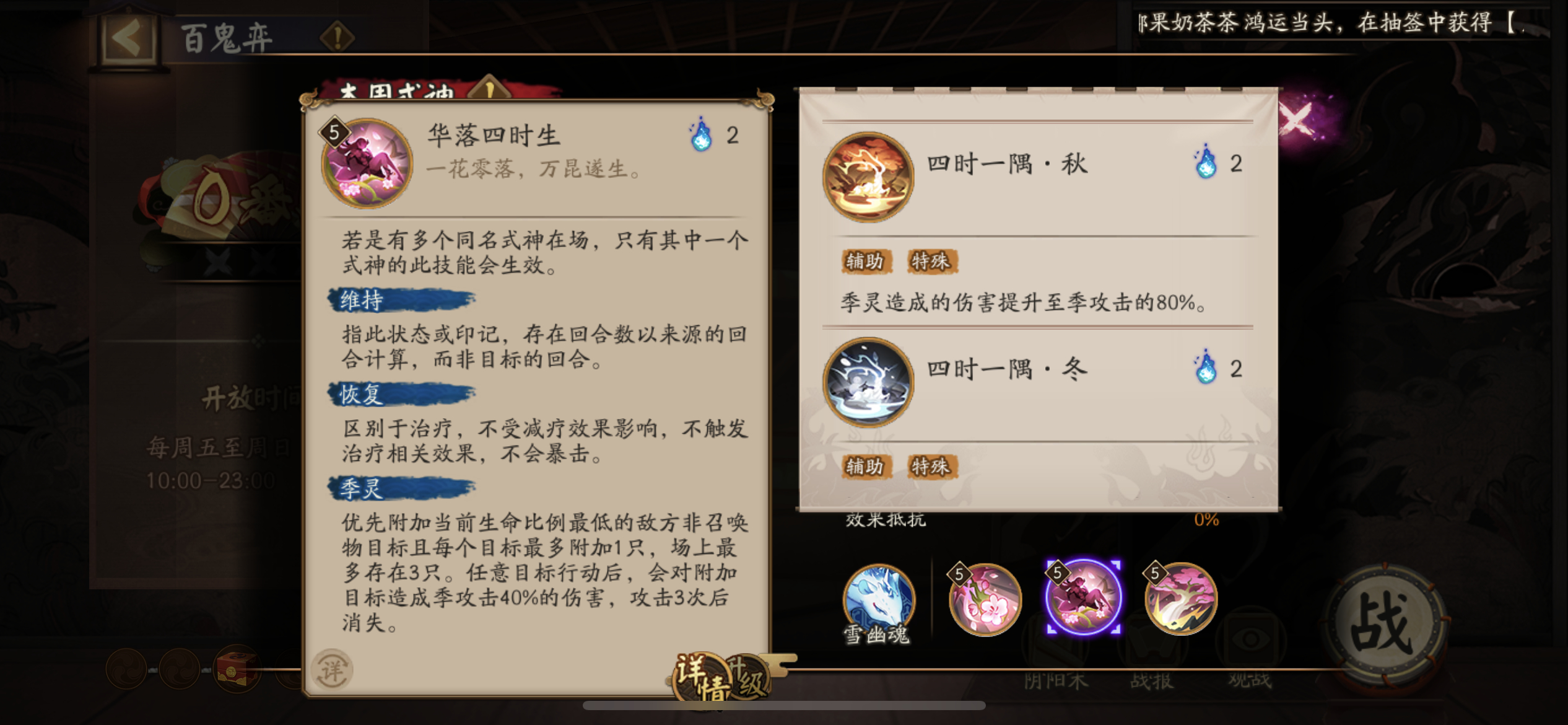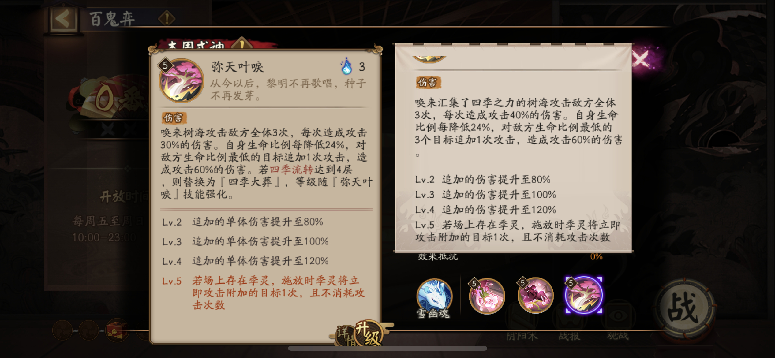 Lv.5 若场上存在季灵,施放时季灵将立即攻击附加的目标1次,且不消耗攻击次数