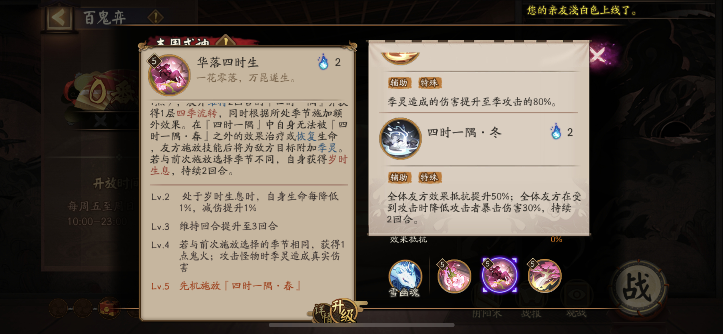 Lv.4 若与前次施放选择的季节相同,获得1点鬼火;攻击怪物时季灵造成真实伤害