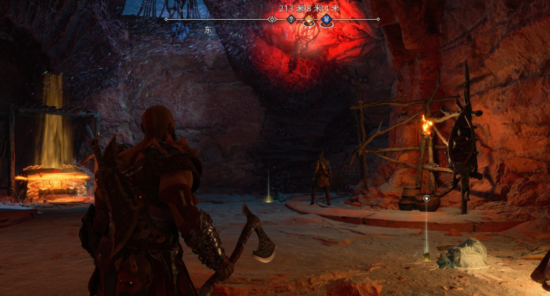 3、在「亚尔法海姆 - 下界」这里,需要帮助这里的哈弗古法挣脱束缚,然后从打开的新通道离开,利用锁链撞开天花板的石板,可以看到前方有「传奇宝箱」,获得「胸甲 - 光辉肩带」。