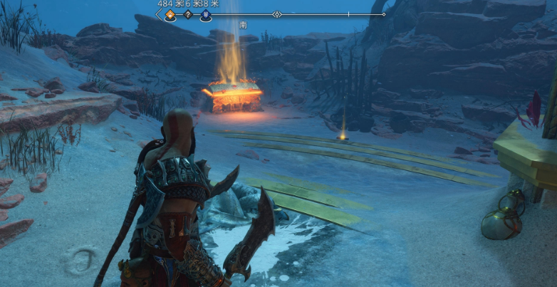 2、在「亚尔法海姆 - 荒原」下图的位置有一个传奇宝箱,打开这个宝箱可以得到「腕甲 - 光辉护手」。