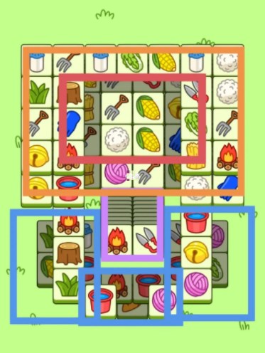 开局先消除橙色区的边框,按照从外到里的方式消除表面牌,不要跨层太多拿牌;