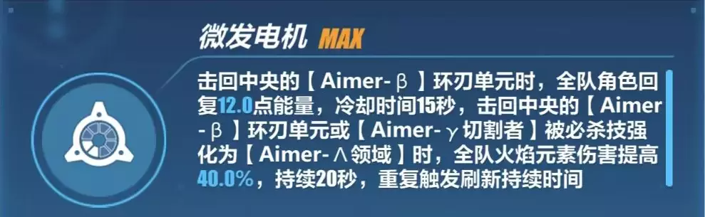 ②攒动能-打蓄力:必杀后动能是空的,因此要打出新的γ锯盘就要重走1、2阶段。设想下天罚流雷律开大不回动能,吐息要等普攻一轮才能释放,相信你就能体会到爱衣启动的问题。