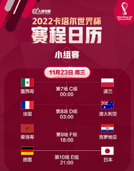 2022-11-22 2022世界杯11.23赛程表 卡塔尔世界杯11月23日赛程