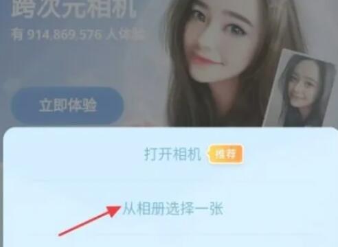 在弹出的对话框中,选择拍照,或是从相册里选择一张照片,以“从相册选择一张”为例。