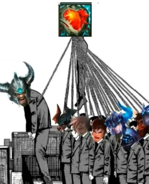 1、这个梗主要是由于心之钢这件装备不只有坦克英雄才能出,只要愿意可以让任何英雄都做出这个装备,所以有了联盟这个说法。