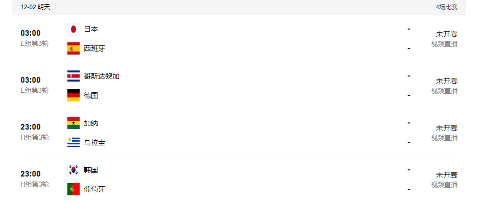 2022-12-01 2022世界杯赛程时间表12月2日 2022卡塔尔世界杯12.2具体赛程