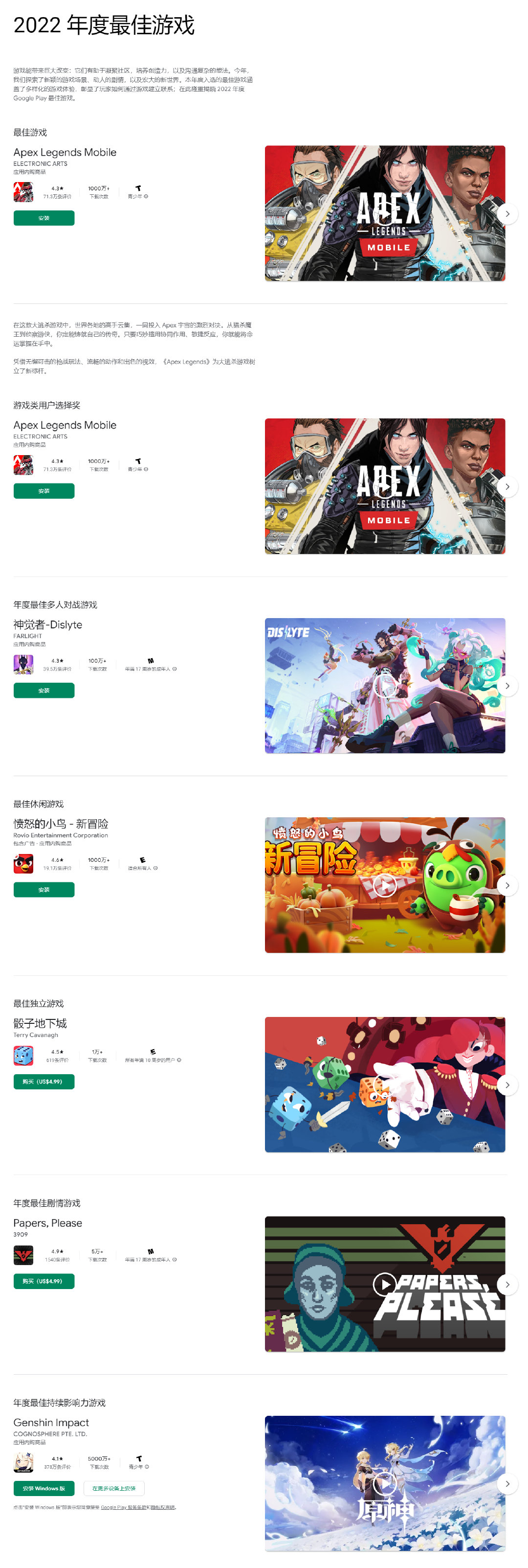 以上就是手游巴士为您提供《google play 2022年度游戏有哪些 Google Play2022年度游戏奖项介绍》的详细内容,更多精彩内容请继续阅读上一篇《宝可梦朱紫衣服在哪里买 宝可梦朱紫衣服店在哪》2022-12-01 生存冒险类游戏【木筏求生】最低配置要求推荐