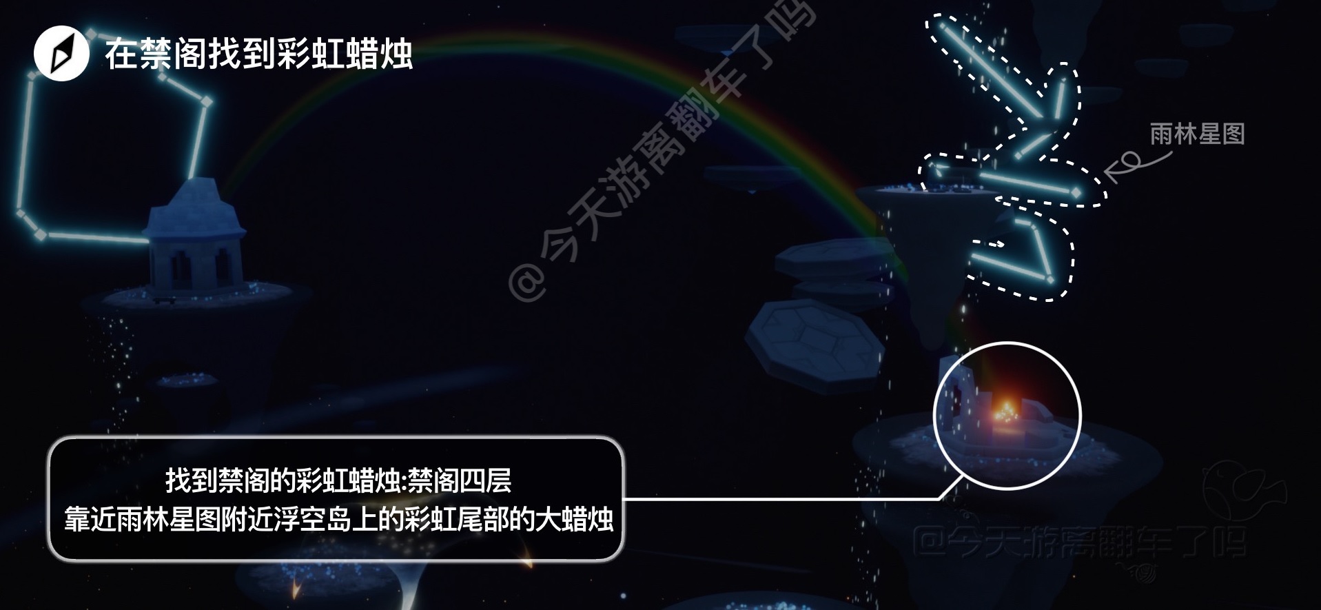 完成方法:禁阁四层,靠近彩虹尾部的大蜡烛