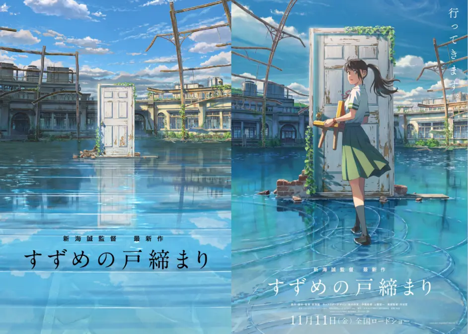 新海诚原作、导演、剧本的新作动画电影《铃芽户缔》(官译名,原名:すずめの戸締まり)在朝日新闻报纸公开了全面广告海报图,本作将于 2022 年 11 月 11日日本本土上映!