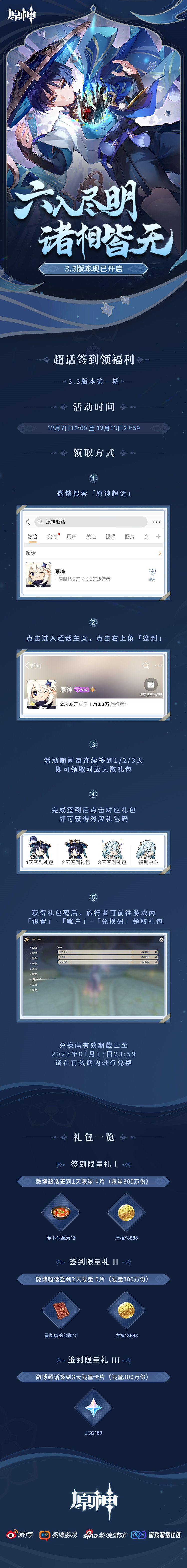 2022-12-07 原神3.3版本签到活动 原神3.3版本签到地址